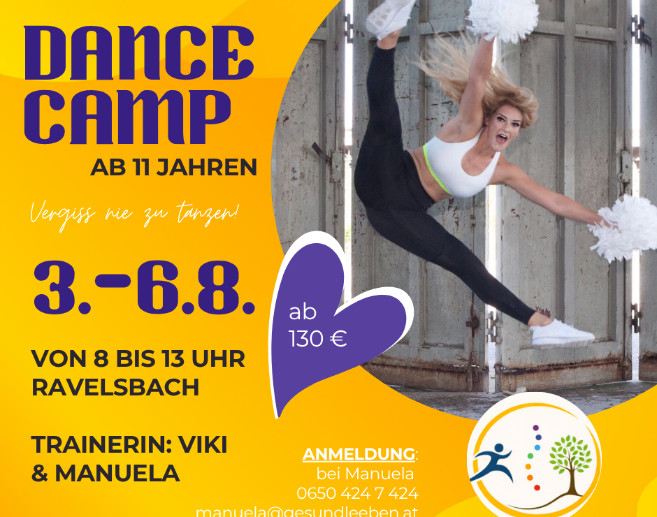 In unserem Dance Camp für Mädchen ab 11 Jahren tauchst du in verschiedene Tanzstile ein. Du lernst neue Bewegungen, verbesserst deine Technik, stärkst deine Körpermitte und entwickelst gemeinsam mit der Gruppe eine mitreißende Choreografie.